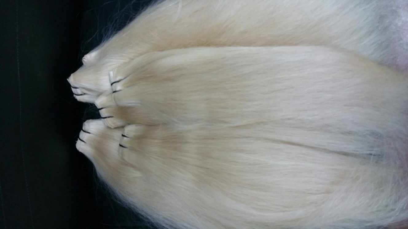 Nesse método, uma grande quantidade de cabelo é agrupada em uma mecha e então – manual ou mecanicamente – costurado ao longo de um comprimento de aproximadamente 1 a 1,5 metros por vários fios.